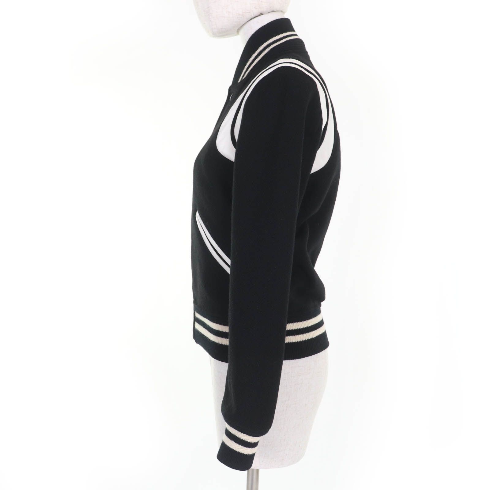 SAINT LAURENT PARIS サンローランパリ 376283 ウール レザー使い エディ期 テディジャケット ブルゾン ブラック 34 フランス製 レディース