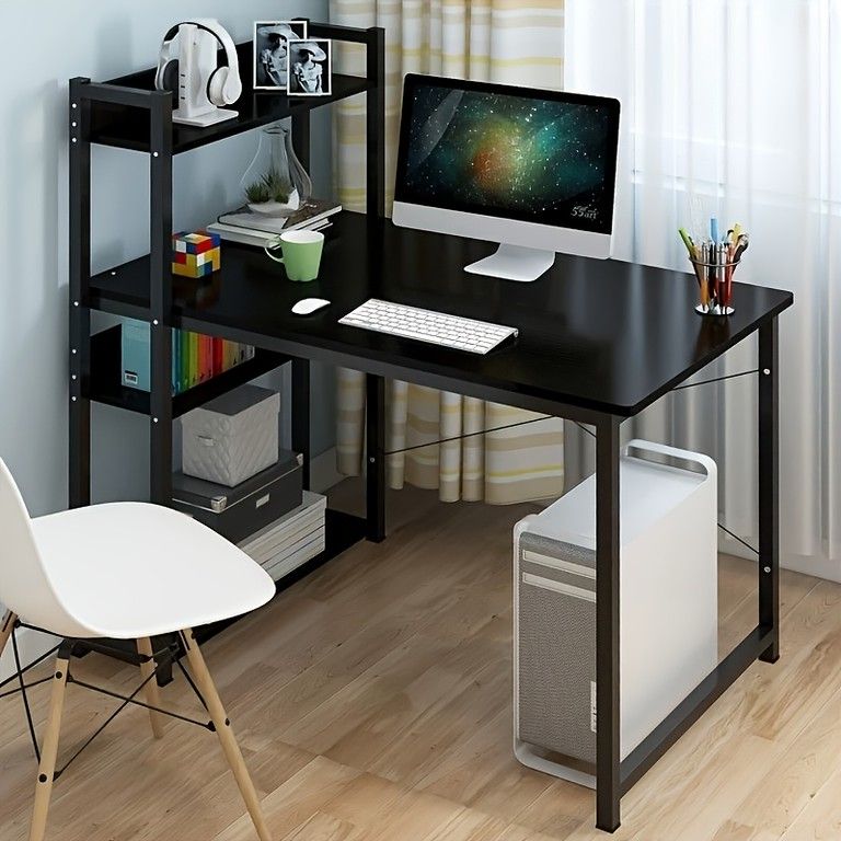 高耐久 省スペース 学習机 110 cm 幅 コンピューターデスク 木製 ワークデスク 内蔵収納棚付き ホームオフィス 寝室に最適 簡単組立 北欧風デザイン 選べる ブラック
