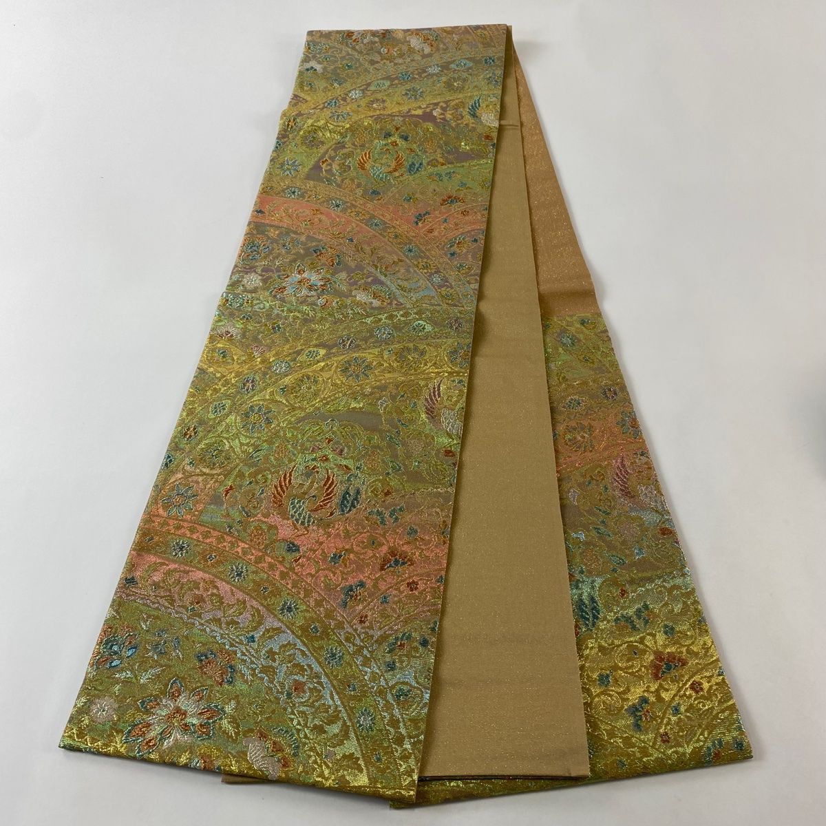 袋帯 綾羅錦繍 鳳凰 花唐草 金糸 箔 金色 六通 正絹