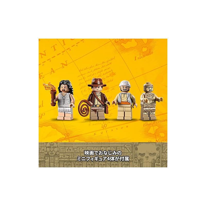 ミニフィギュア4体 ? 帽子とムチがトレードマークのインディ・ジョーンズ、マリオン・レイヴンウッド、サラー、ミイラのミニフィギュアのほか、地面を覆い、壁面から這い出すヘビが付属しています。