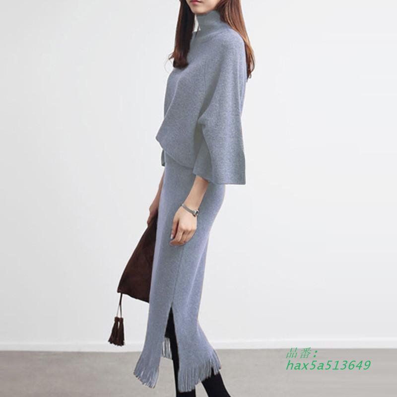 セットアップ レディース ニット 秋冬 長袖 上下セット カジュアル オシャレ セーター スカート 卒業式 ロング丈 ハイネック hax 5 a 513649