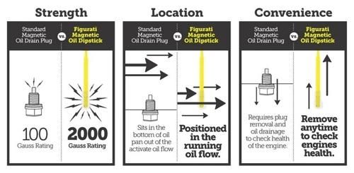 走行中にエンジン内部に浮遊する金属粒子を強力マグネット(約2000ガウス)でしっかりキャッチ。エンジンオイルの汚染を予防し、愛車の寿命を着実に延ばしてくれます。
