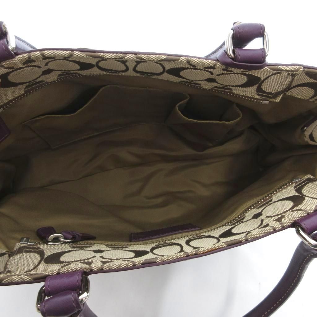 コーチ COACH ハンドバッグ キャンバス レザー シグネチャー 紫 パープル ベージュ JS GY 18