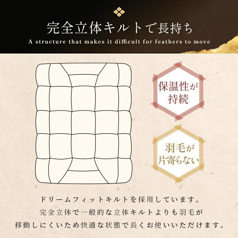 完全立体キルト「ドリームフィットキルト」にて羽毛が片寄らず、保温性が持続!