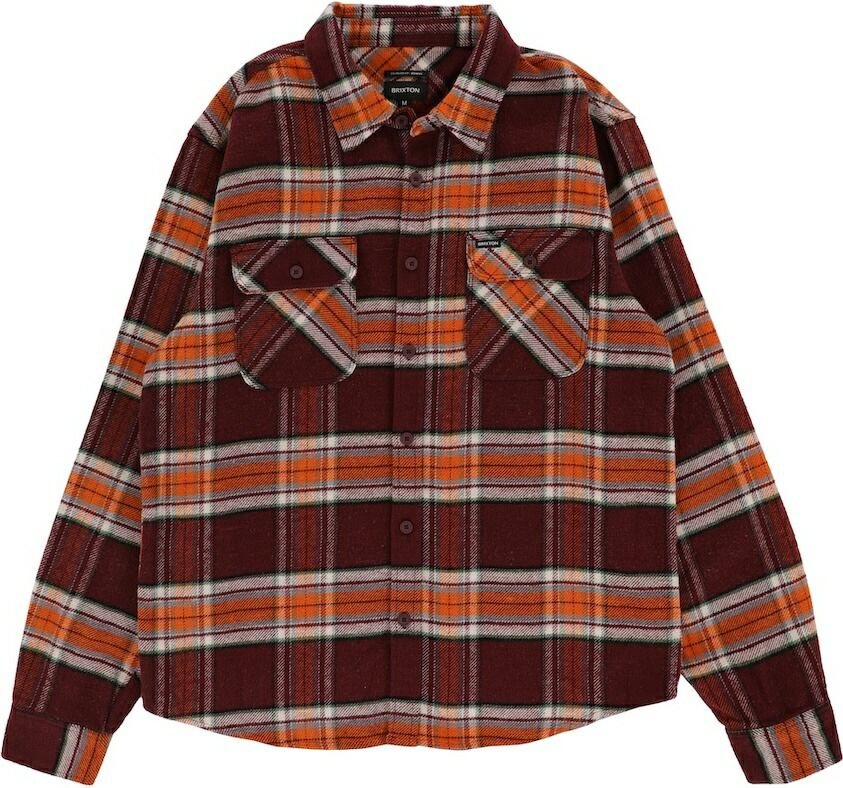 Brixton Bowery L S Flannel Shirt Mahogany Burnt Orange ネルシャツ