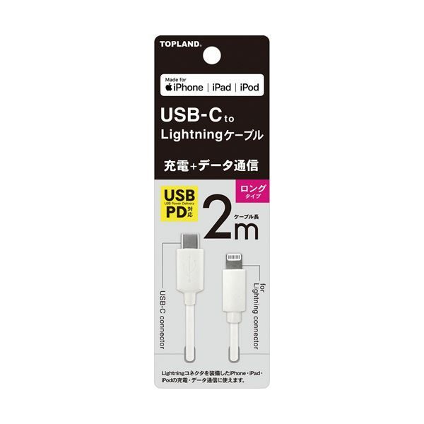 まとめ トップランドUSB-C Lightningケーブル ホワイト 2 m -WT 1本 ×