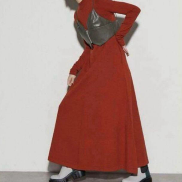 柔らかい肌触りのシンプルなフレアニットワンピース。1枚でも着用出来ますが、様々なレイヤードスタイルに使いやすいアイテムです。フレアシルエットでもマキシ丈なのでモードなスタイリングに合わせやすくなっています。
