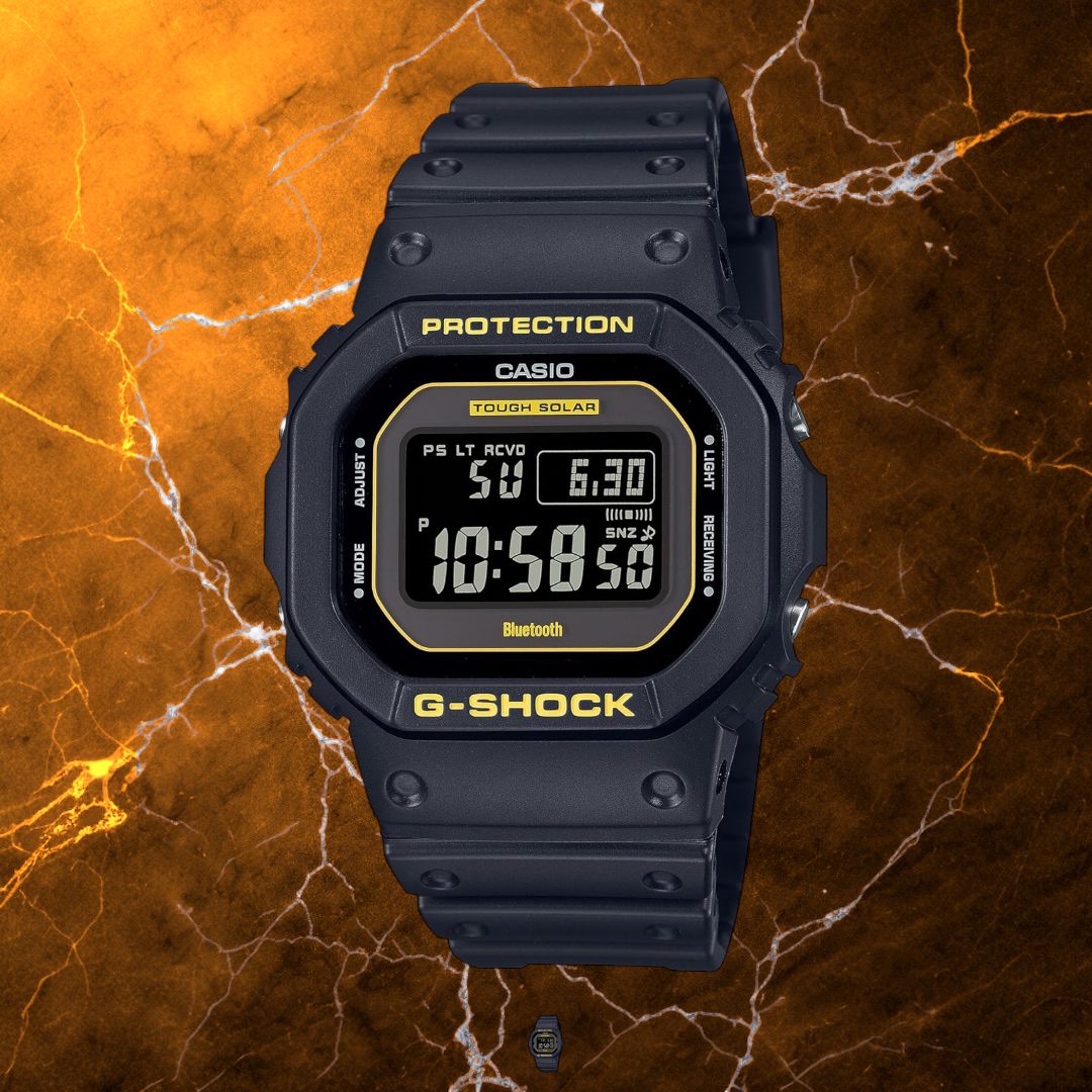 G-SHOCK GW-B5600CY-1JFの詳細スペック基本情報モデル名: GW-B5600CY-1JF発売日: 2023年10月デザインカラー: ブラック/イエロー素材:ケース: 樹脂バンド: 樹脂風防: 無機ガラス(モース硬度7で傷がつきにくい)サイズケースサイズ:幅: 42.8 mm高さ: 48.9 mm厚さ: 13.4 mm重量: 53 g装着可能サイズ: 手首回り145~205 mm機能表示方式: デジタル表示駆動方式: タフソーラー(光発電)電波受信: 標準電波受信機能を搭載し、正確な時刻を表示Bluetooth機能: スマートフォンとの連携が可能防水性能: 20気圧防水耐衝撃構造: 衝撃や振動に強い設計その他の機能ワールドタイム: 世界48都市(29タイムゾーン、サマータイム設定機能付き)ストップウォッチ: 1/100秒、最大24時間計測可能タイマー: 最大24時間まで設定可能アラーム: 5つのアラーム設定が可能(1つはスヌーズ機能付き)フルオートカレンダー: 自動で日付を修正LEDバックライト: 暗所での視認性を向上バッテリーインジケーター: 残量表示機能パワーセービング機能: 暗所では表示を消して節電状態に入るこのGW-B5600CY-1JFは、タフネスウオッチとしての機能を備えつつ、スタイリッシュなデザインが特徴です。日常使いからアウトドアまで幅広く活躍するアイテムです。