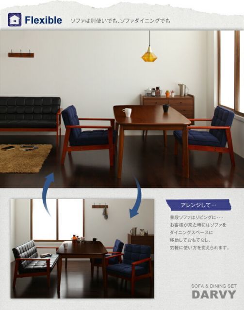 ソファ-ダイニングセット DARVY ダーヴィ 3点セット テーブル 2 Pソファ2脚 W 160