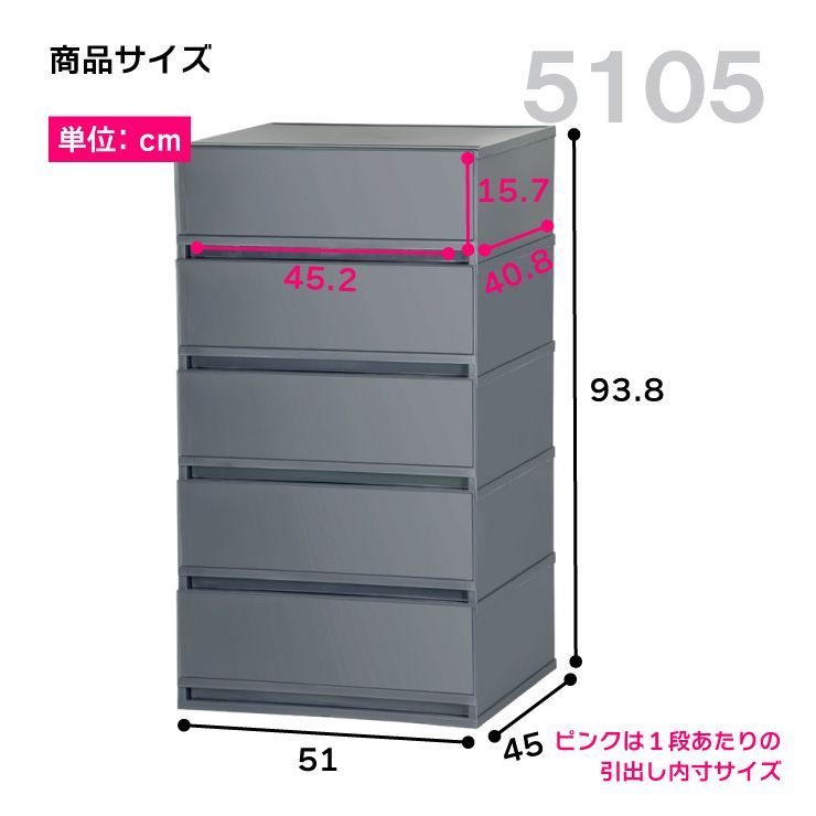 収納ケース プラスチック 引き出し 幅51 cm 奥行45 5段 ワイド 幅広 ほこりの入りにくい壁タイプ 半透明タイプ クローゼット 押入れ 衣類収納 衣装ケース PPケース おしゃれ 新生活 寝室 白い収納ケース プラストベーシックFR 5105