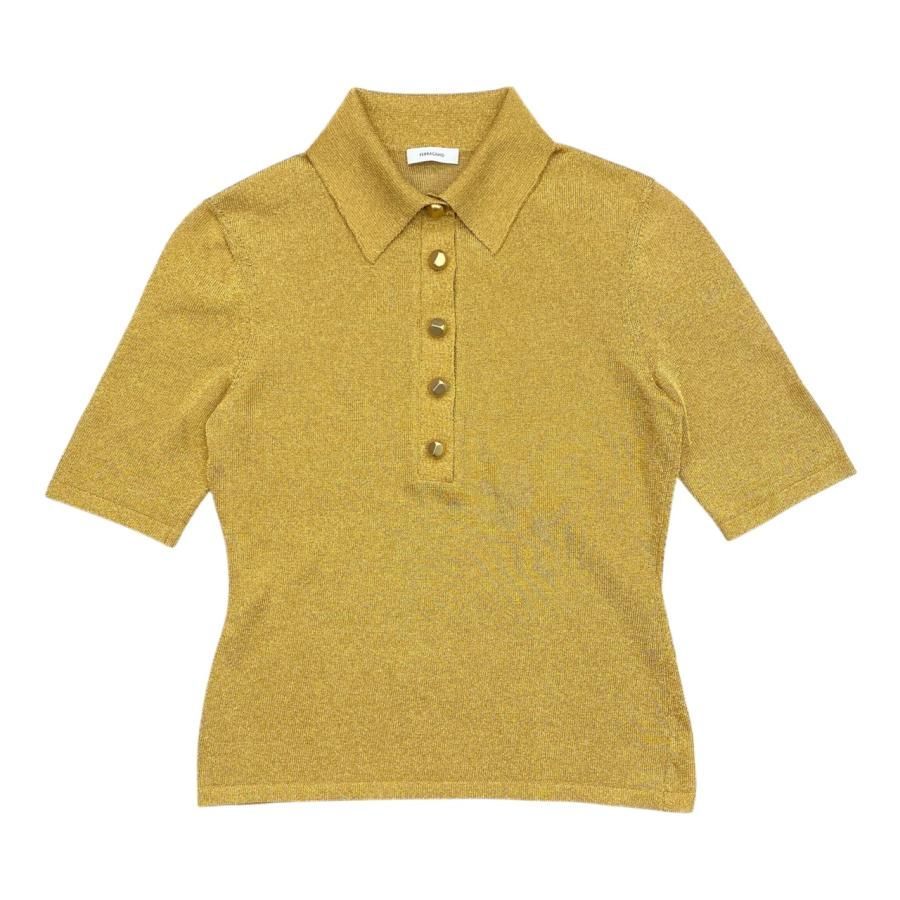 E 4735 フェラガモ 5分袖シャツ ポロシャツ ニット ボタン ラメ ゴールド FERRAGAMO