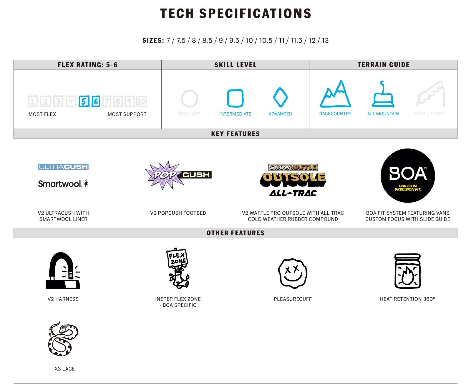快適性、コントロール性、そしてVansだけが提供できるスタイルを兼ね備えたAura Proは、あらゆる環境でパフォーマンスを発揮するブーツとして、その多用途性と耐久性の評判に恥じない性能を発揮します。Vansカスタム・フォーカスを搭載したデュアルゾーンBOA®フィットシステムは、カスタム・スライド・ガイドによるカスタマイズ可能な快適性とヒールホールドを基盤に、その時々のシチュエーションに応じて無限のマイクロ調整性を実現します。