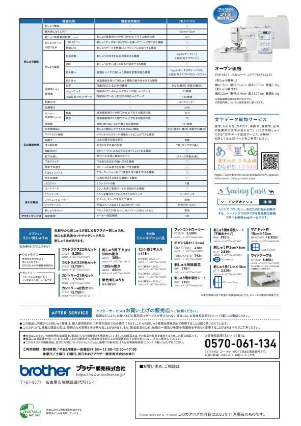 ブラザー刺しゅうミシン PICNOKW キッピス 刺しゅうミシン ブラザーミシン