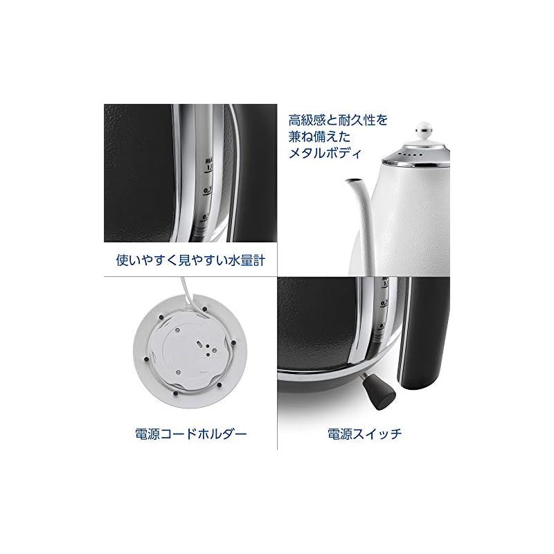 De Longhi デロンギ 電気カフェケトル アイコナ -W ステンレス ハンドドリップ 1.0 L 正確な注ぎ心地 見やすい水量計 空だき防止機能 電源コードホルダー ピースフルホワイト デロンギファミリー登録で3年 1
