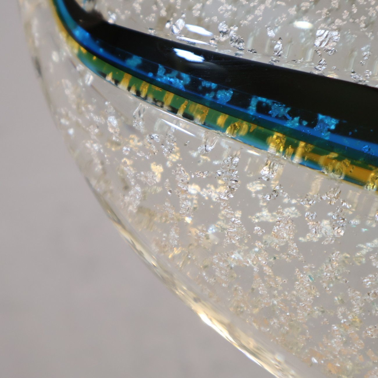 透明感のあるクリスタルガラスに銀箔が散りばめられた煌びやかで優雅な佇まいです。