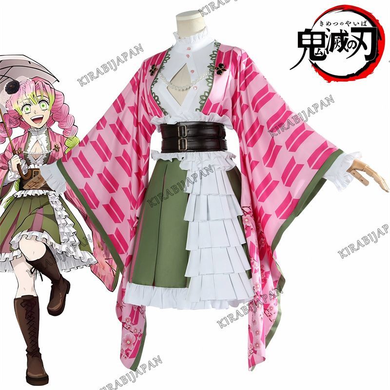 鬼滅の刃 甘露寺蜜璃 コスプレ衣装 蜜璃 周年祝い 記念 服を着飾る 全セット ヘア ネックレス付き ウィッグ 追加 可 コスチューム Cosplay 撮影用 イベント