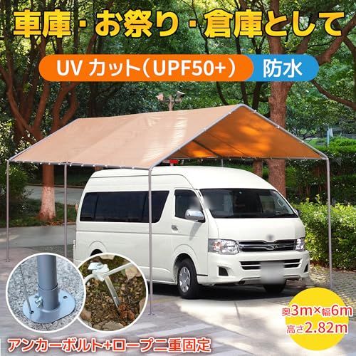 ガレージテント 車庫テント カーポート 3 6 m パイプ車庫 軽自動車対応 大型 車 駐車 倉庫 収納 物置 仮設倉庫 スチール製 防水 簡易 ベージュ ma