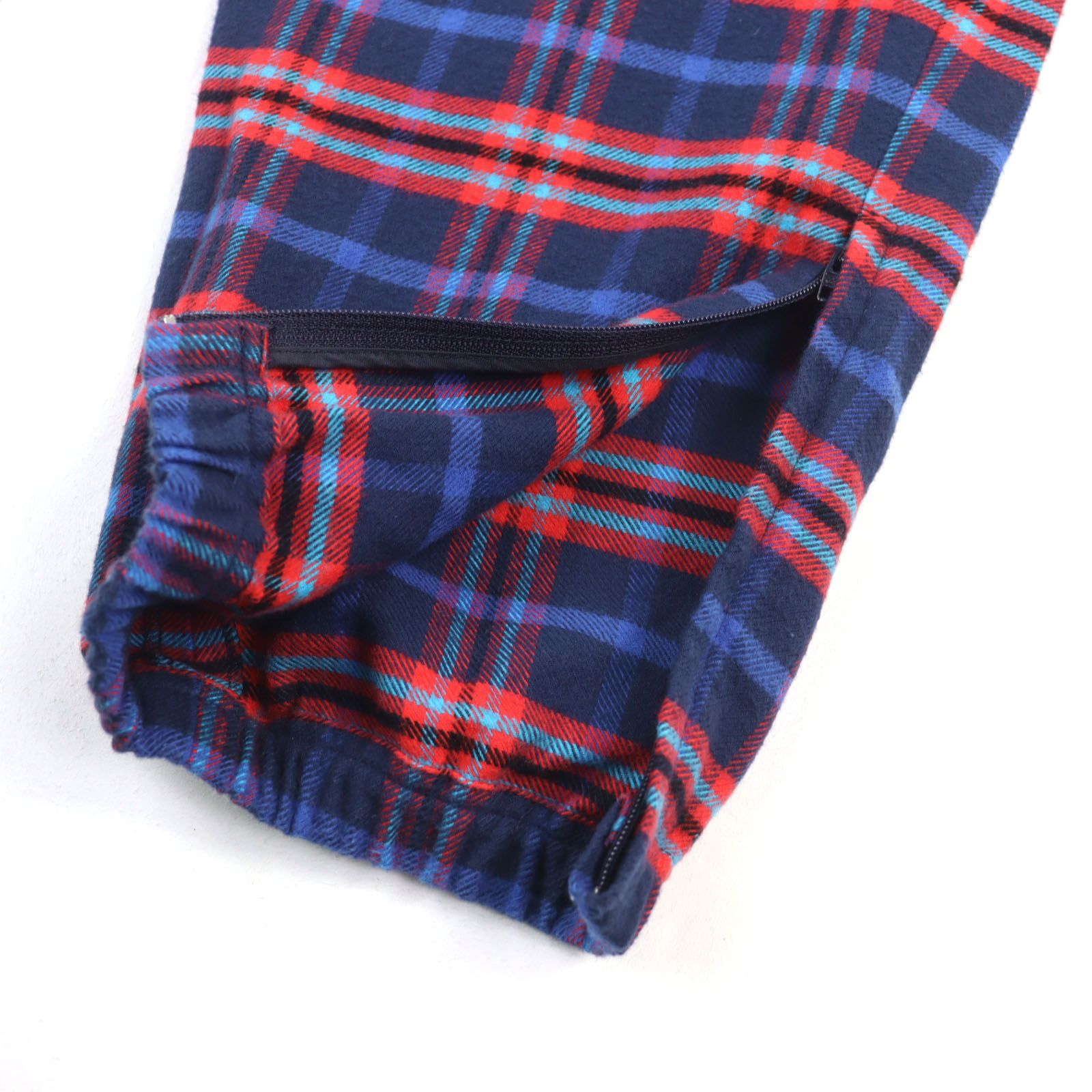 ドンドン見直し バレンシアガ 508491 CHECK FLANNEL PANT コットン ロゴ刺繍 裾ジップ チェックイージーパンツ レッド ブルー XS イタリア製 メンズ