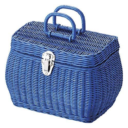 バスケット 籐 ラタン かご 蓋付き 小物入れ 収納 バッグ ブルー 約23×15×16cm 31-03BL