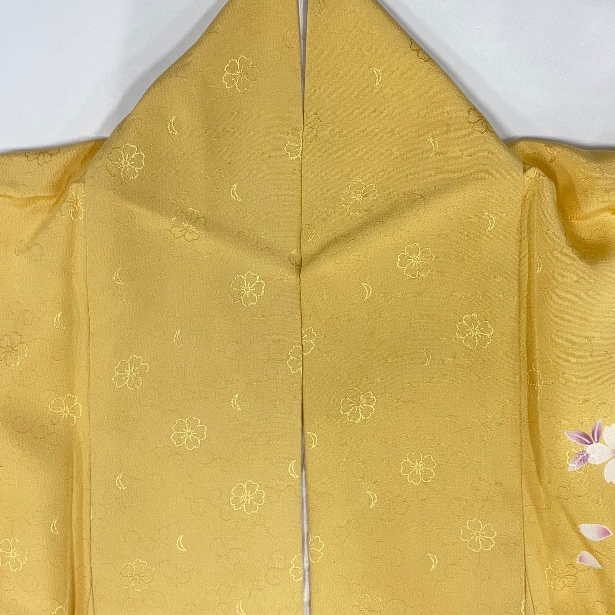 振袖 身丈167.5 cm 裄丈70 L 袷 桜 地紋 染め分け 薄黄 正絹 名品