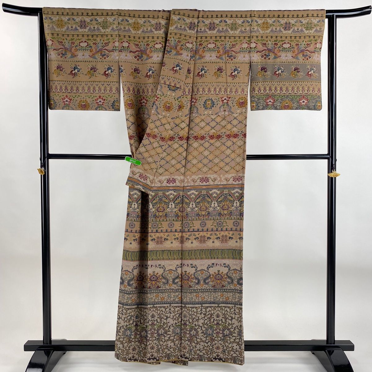 訪問着 身丈159 cm 裄丈67.5 L 袷 前田仁仙 草花 鳳凰 縮緬 灰茶 正絹