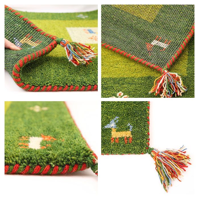 同じデザインでも少しずつ表情が違うのが魅力の一つ。糸を1本ずつ手で結ぶハンドノットという織り方で時間と手間をかけて作り上げられたギャッベはすべて一点もの。