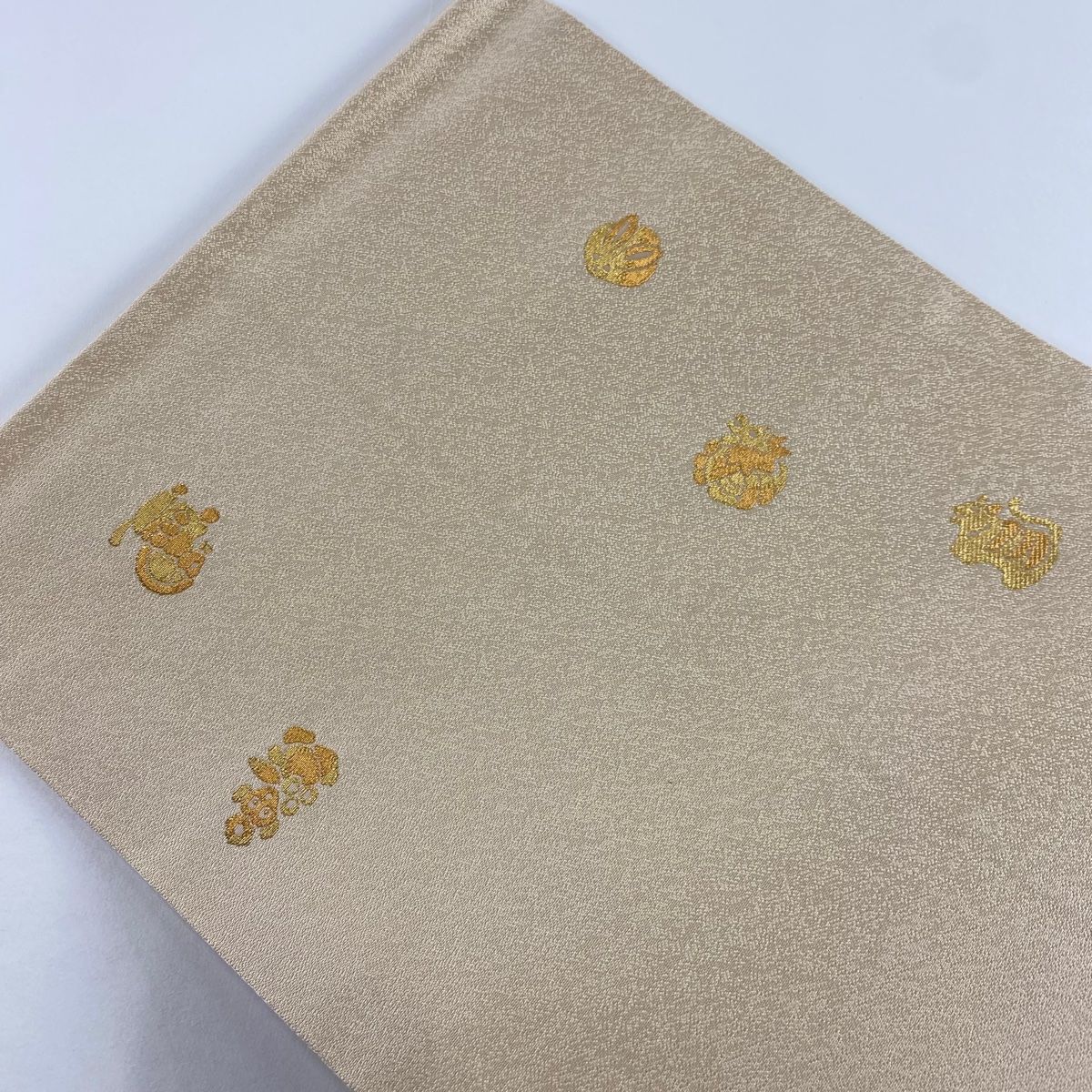 開き名古屋帯 長嶋成織物 落款 招き猫 干支 金糸 薄茶色 正絹