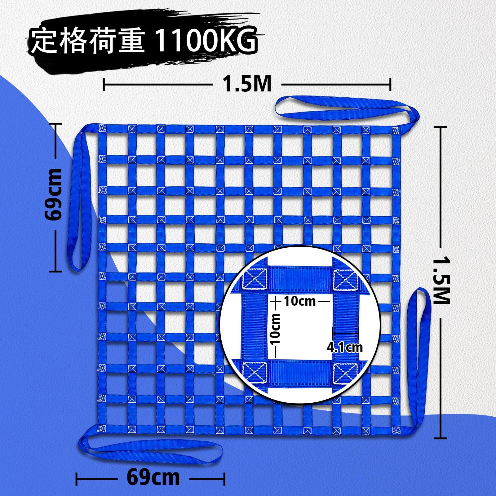 Dragnwin 安全リフティングネット 吊り上げワークギア 1100kg 1.5m*1.5m リフティングネット 貨物ネット カーゴネット 貨物ネットホイスト 吊り具 パレットカーゴネット