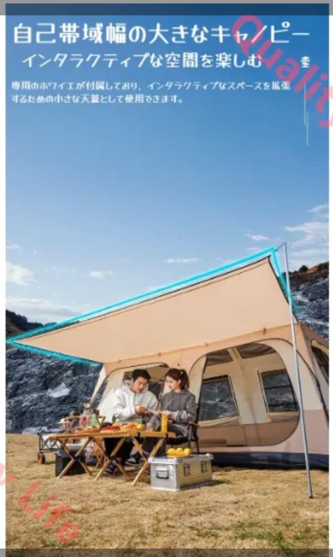 430*305cm200cmルームとリビング装備大空間あり、8-12人収容可能快適な居住空間を楽しめながら、椅子、テーブルなどを並べて余裕なリビングスペースも確保できます。200cmまでの天井の高さあり、テント内に窮屈なしゆったり動き回します。