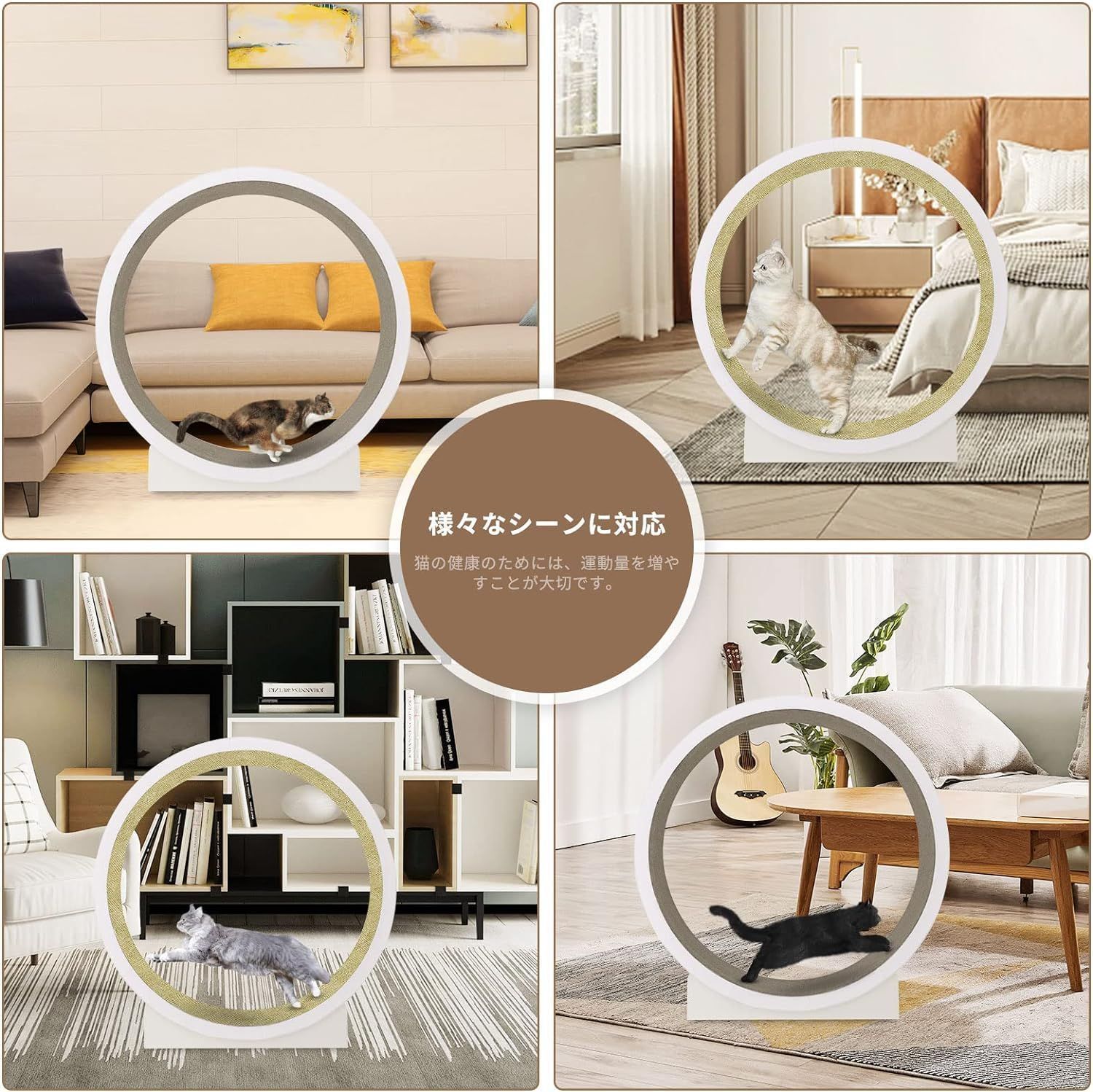 【ペットエンターテインメントの推進】キャットホイールは猫の体を曲げたり伸ばしたりする能力を形作ることで、ペットと一緒にアクティブなライフスタイルを楽しむことができます。 それは潜在的な家具の損傷を減らしながら、猫に何時間もの娯楽と運動の機会を提供します。