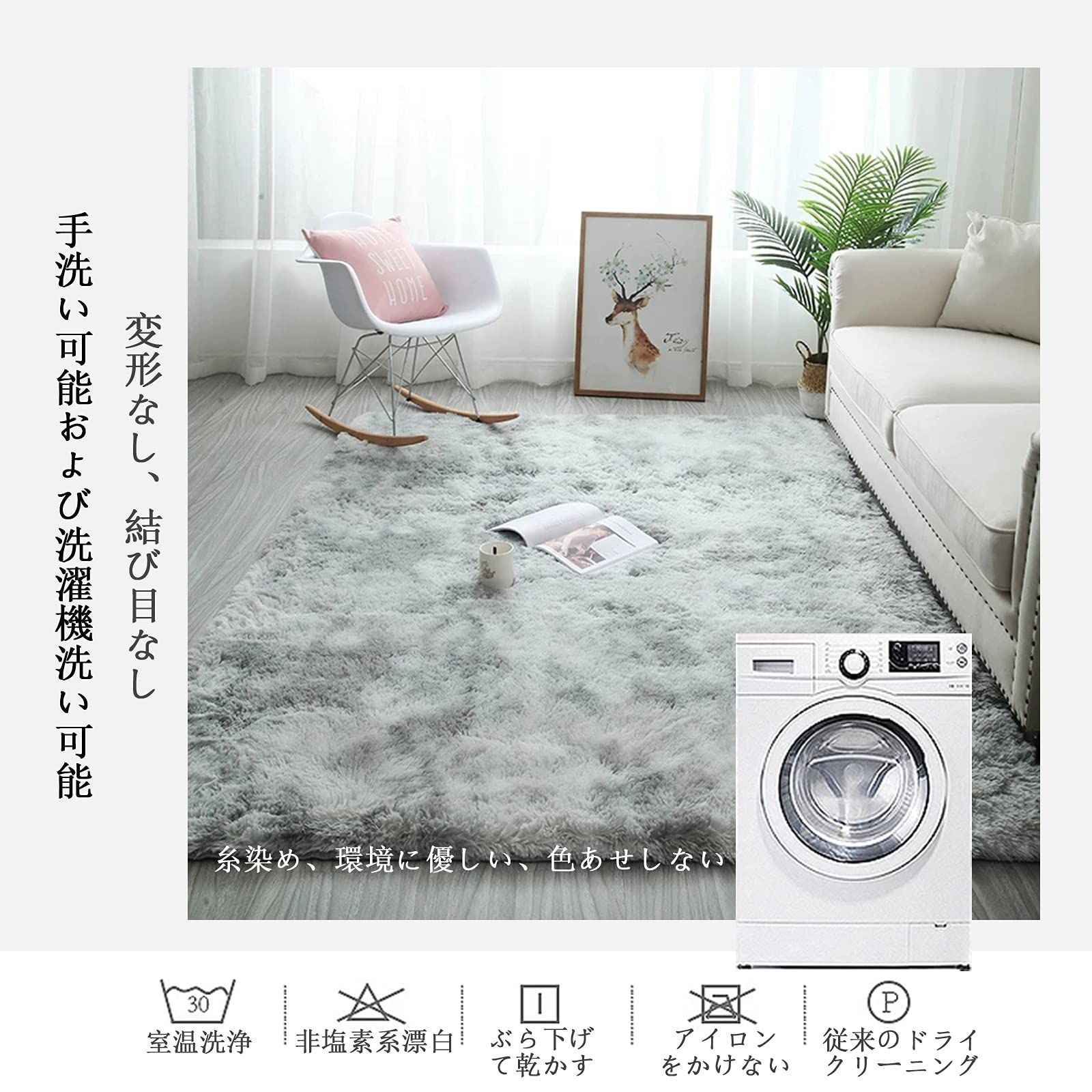 ?【とてもフワフワで、暖かいです】極細繊維素材100%で、ふわふわで弾力性にも優れています。毛足が長くてふかふかですが、コロコロでも毛が抜けないので掃除しやすくてとてもいいです。掃除機かければゴミも絡まずきれいになります。夏用の冷房対策、冬は床暖房・ホットカーペット対応。