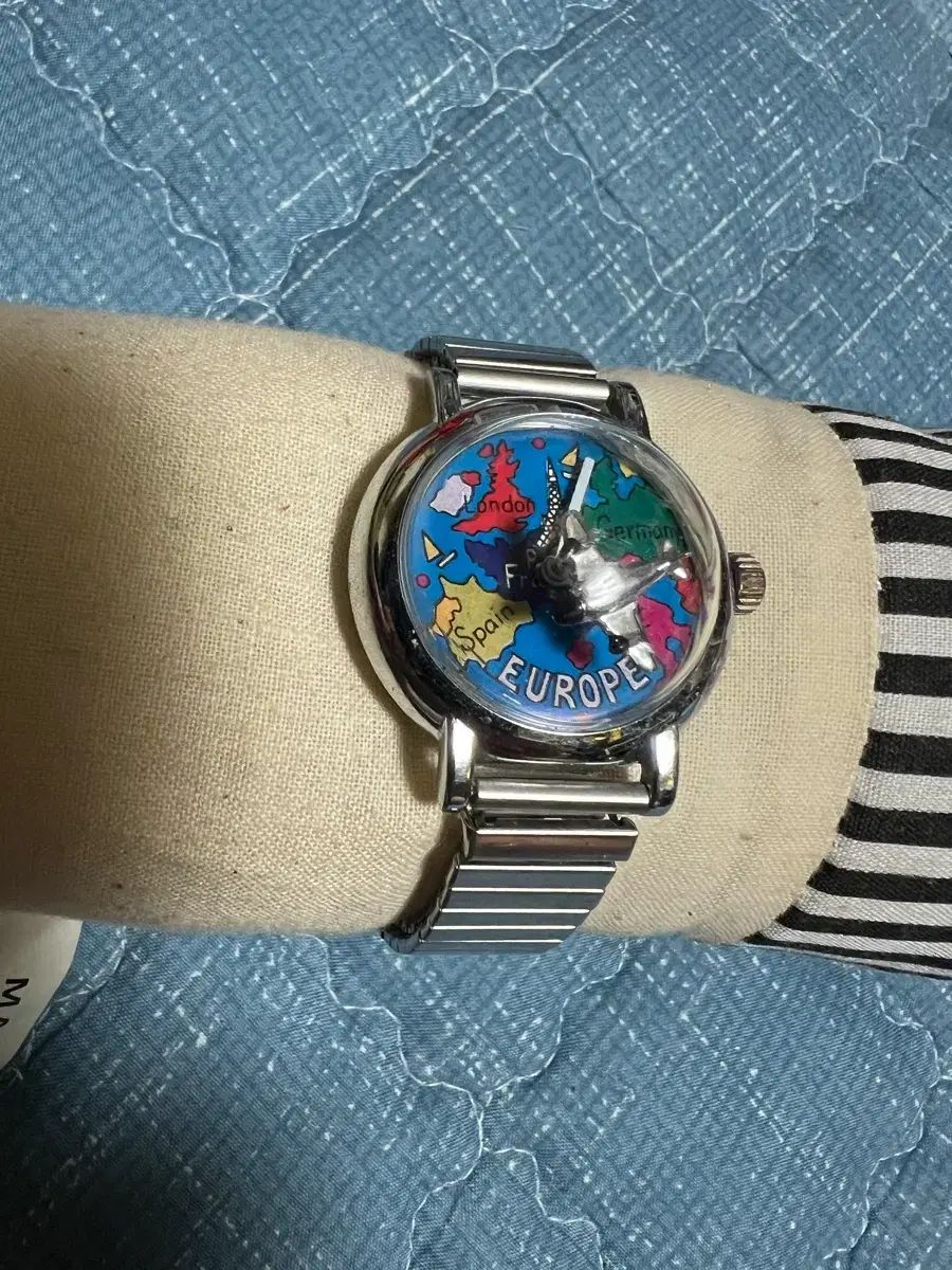 ヴィンテージな世界地図デザインのスチール時計です。青いバターンに、かわいらしい絵で世界地図が描かれています。アンティークな雰囲気で、ユニークなリストウォッチをお探しの方にオススメです。コメントなければ、すぐ安全決済してください!