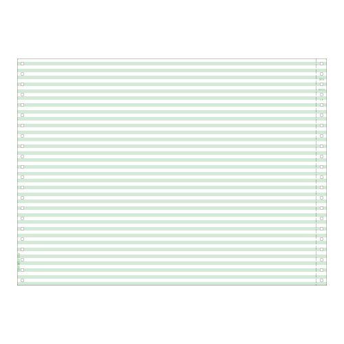 1箱(500シート入り) 用紙サイズ381×279.4mm ミシン目切り離し後の横幅:368.3mm ドットプリンタ用ストックフォーム。1/6ごとにグリーンのアミカケkが入っています。右ミシン入り。