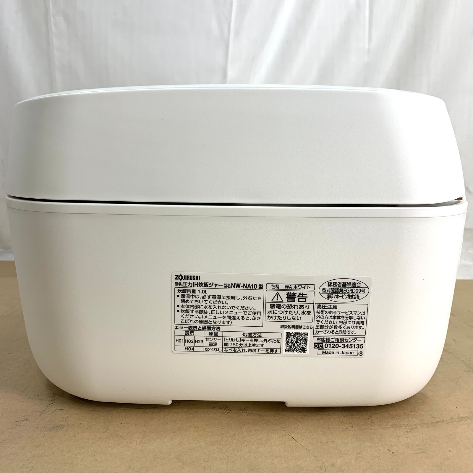 【開封済・未使用品】象印 圧力IH炊飯ジャー 炎舞炊き 鉄 くろがね仕込み 豪炎かまど釜 5.5合炊き NW-NA10-WA ホワイト
