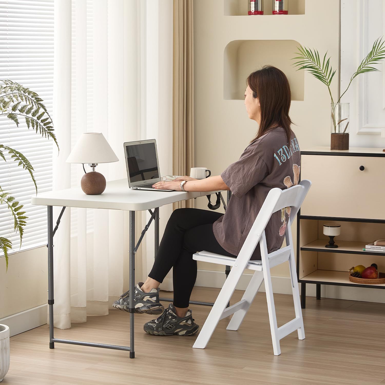 BOOSDEN 折りたたみテーブル 122x60x56.5/73cm 二段階高さ調節 アウトドア テーブル キャンプ ダイニングテーブル コンパクト 組立不要 食卓 リビングテーブル 作業テーブル 持ち運び 軽量 イベント用 室内/屋外 ホワイト