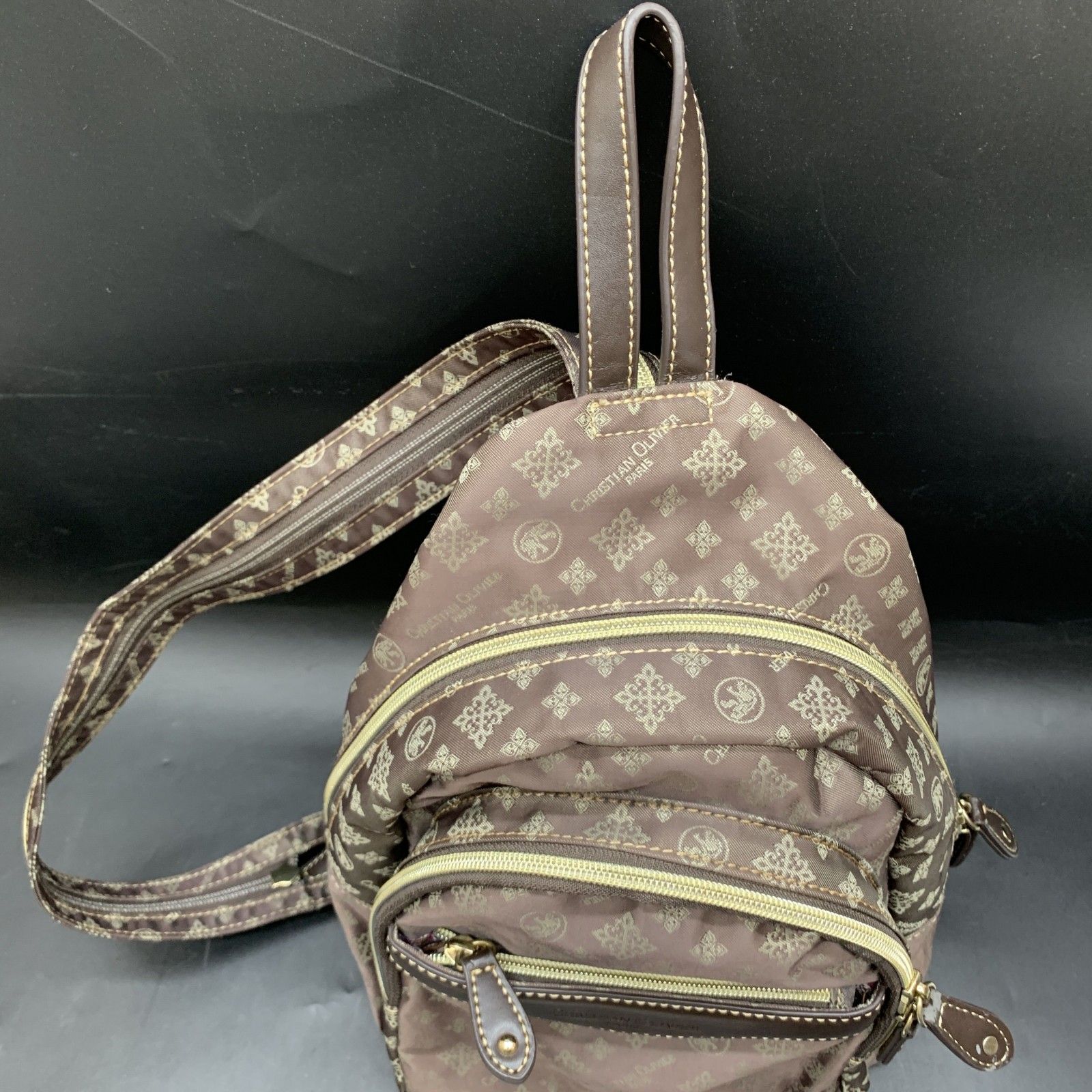 C 351 christian olivier クリスチャンオリビエ ボディバッグ 2 way リュックナイロン 総柄 斜め掛け レディースバッグ ブラウン系