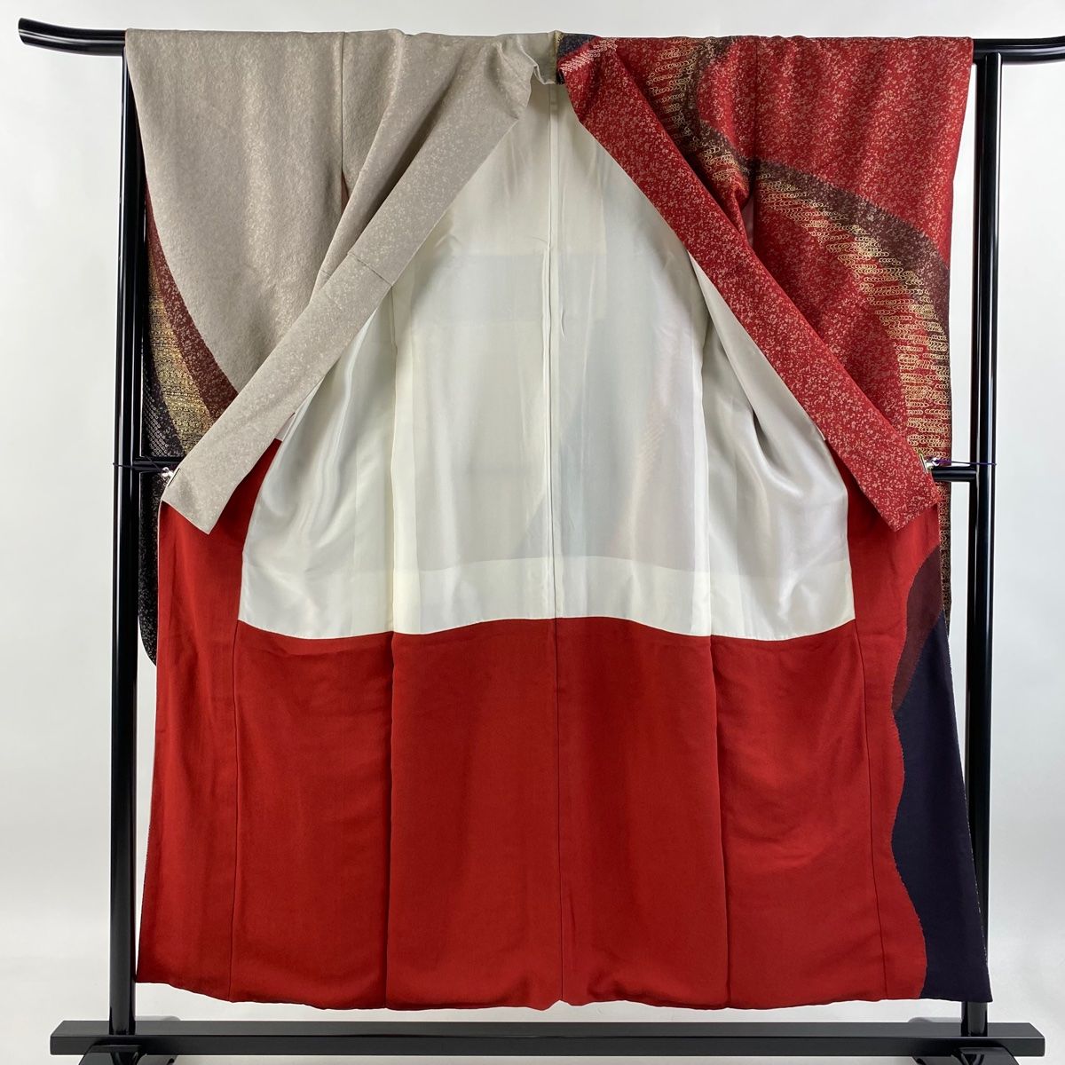 振袖 身丈154 cm 裄丈63.5 S 袷 花 流水 金通し 絞り 赤 正絹