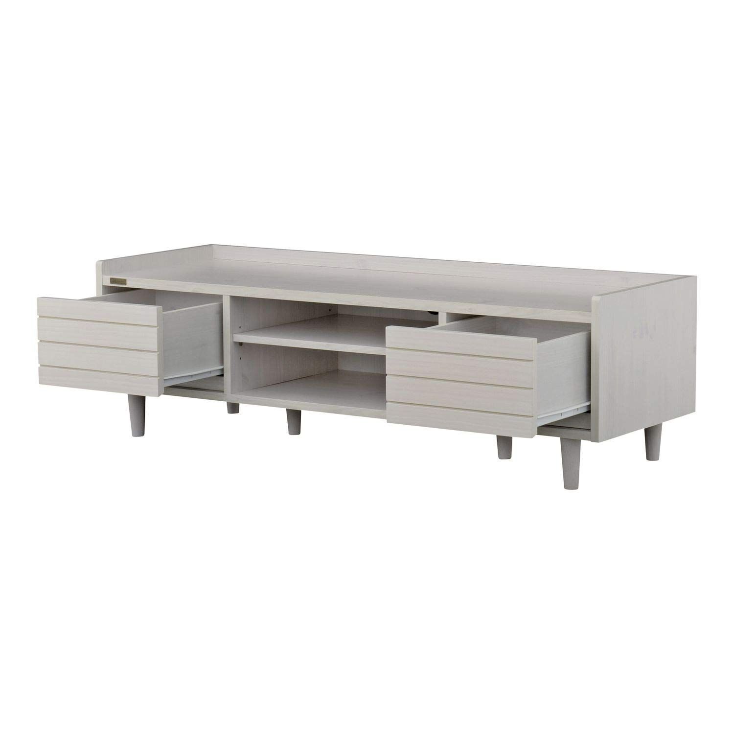 DVDやCDをたっぷり収納できる引出し収納と棚板の高さを調節できるオープン収納が付いています。