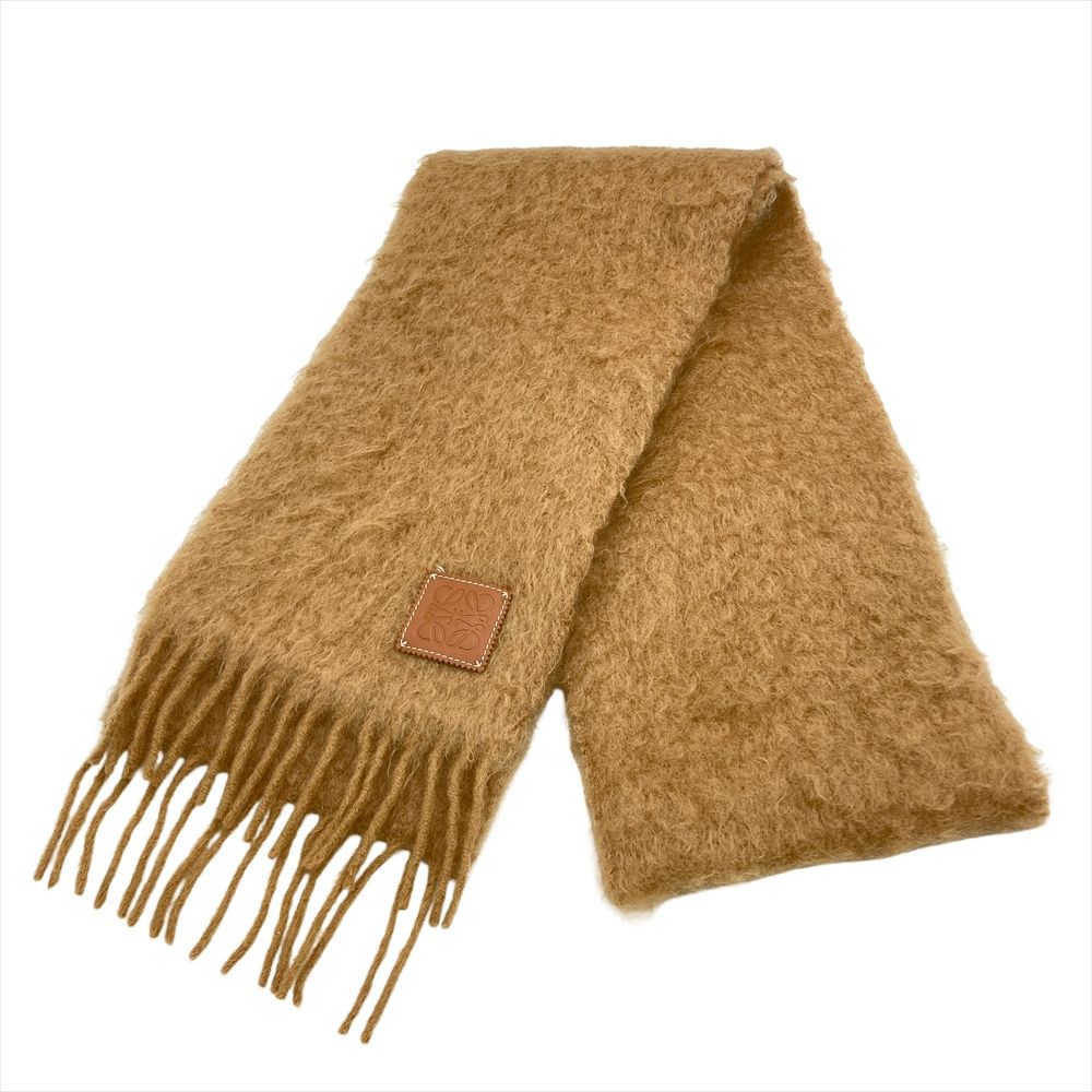 ロエベ LOEWE マフラー ウール モヘヤ ナイロン 200 cm ブラウン レディース