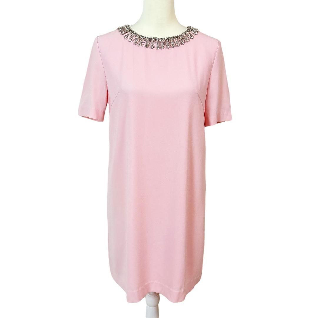 ダイアグラム 半袖ワンピース ビジュー襟 背面プリーツ 36 無地