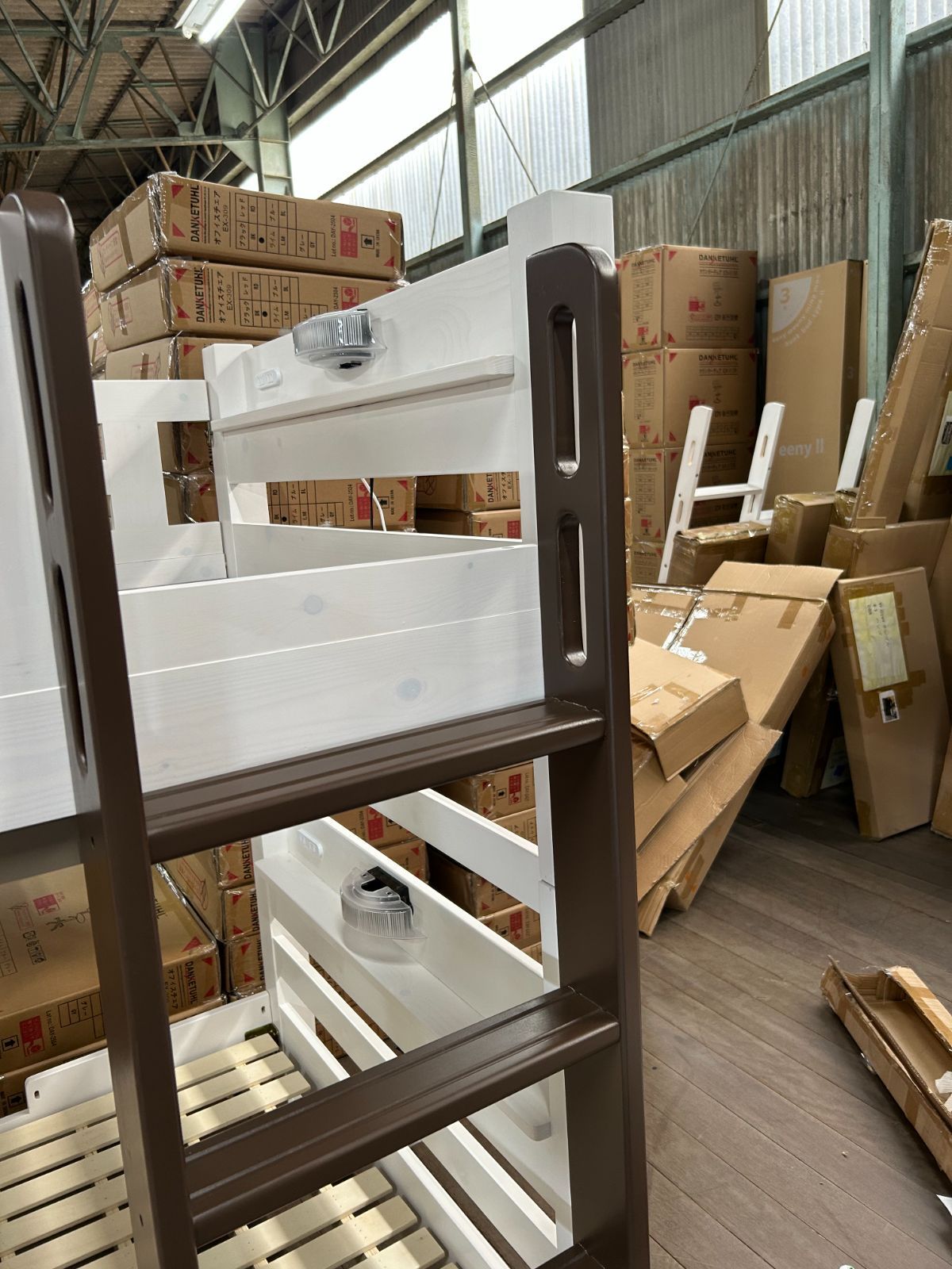 2段ベット ホワイト×ラテ色xブラウン 1台限り 子供ベット み