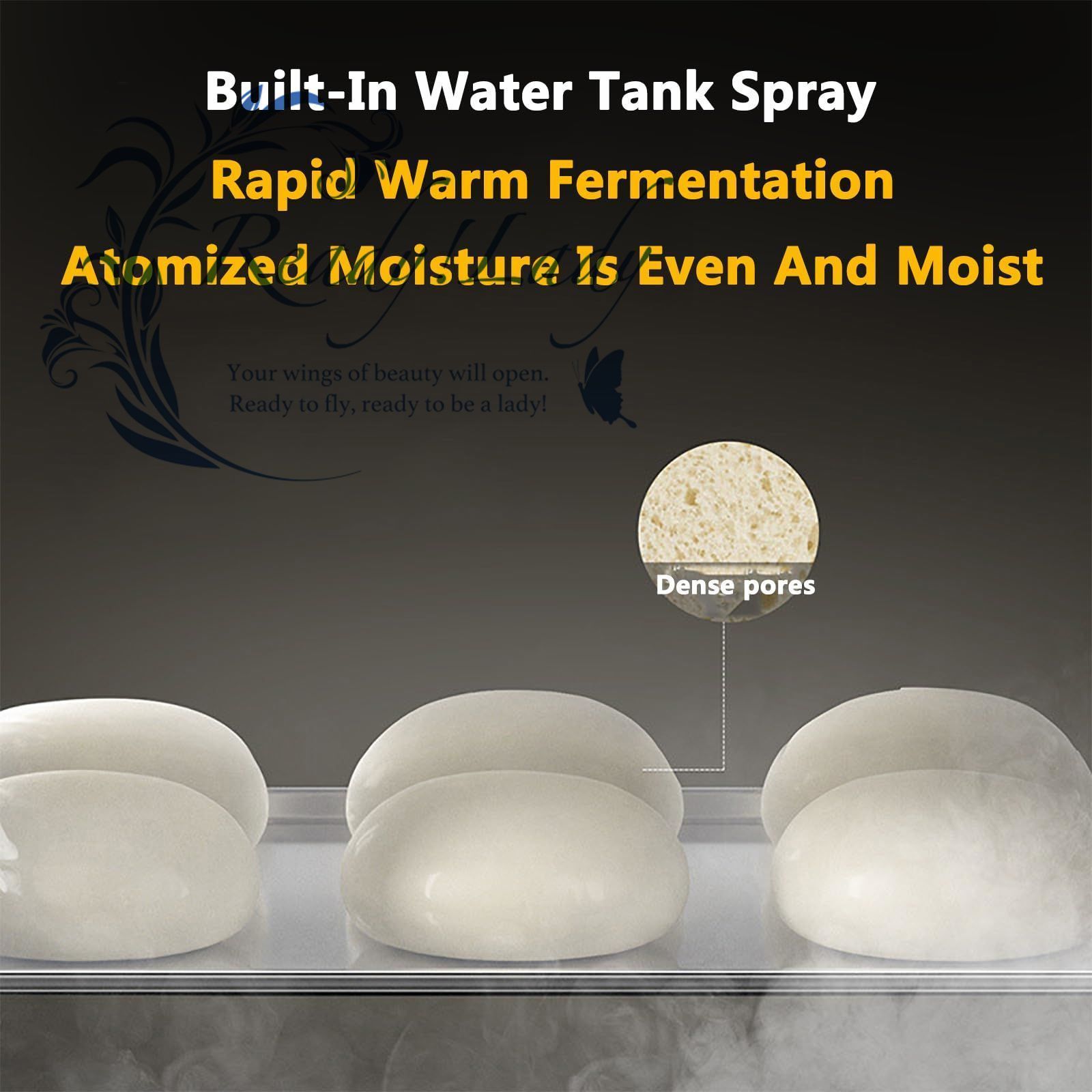 【温度調整可能】温度は30~80℃、湿度は30~110℃で調整可能です。隠蔽加熱により食品が均一に発酵し、発酵効果がより良くなります。高感度温度センサーが温度差の変化を素早く捉えます。