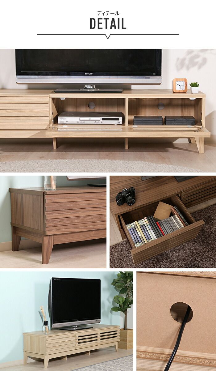 50V型まで対応できるゆったりサイズで、テレビやAV機器、DVDなどをすっきり収納。