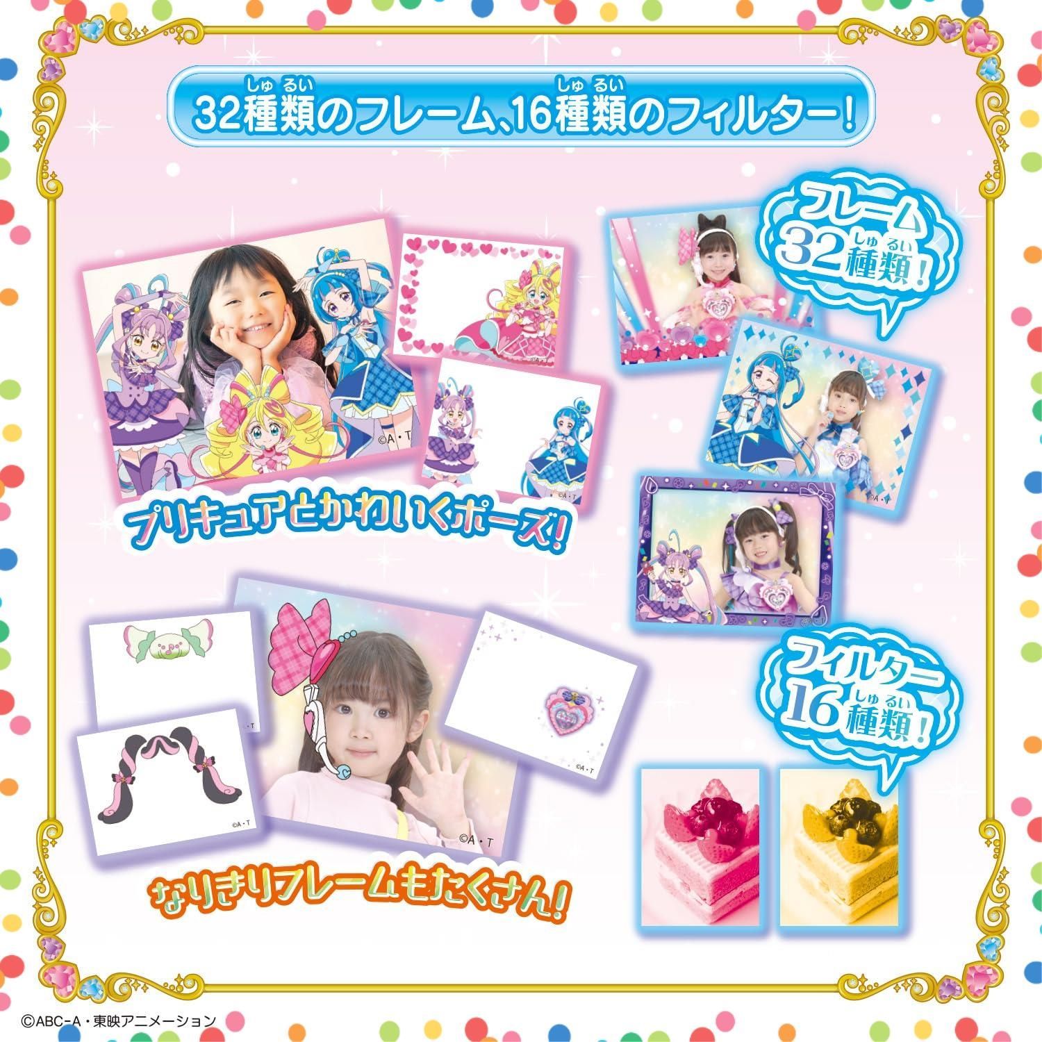 プリキュアと一緒に写真が撮れるフレームを含めオリジナルフレームは30種類以上、フィルターは15種類以上で、他にもたくさんの機能が充実!
