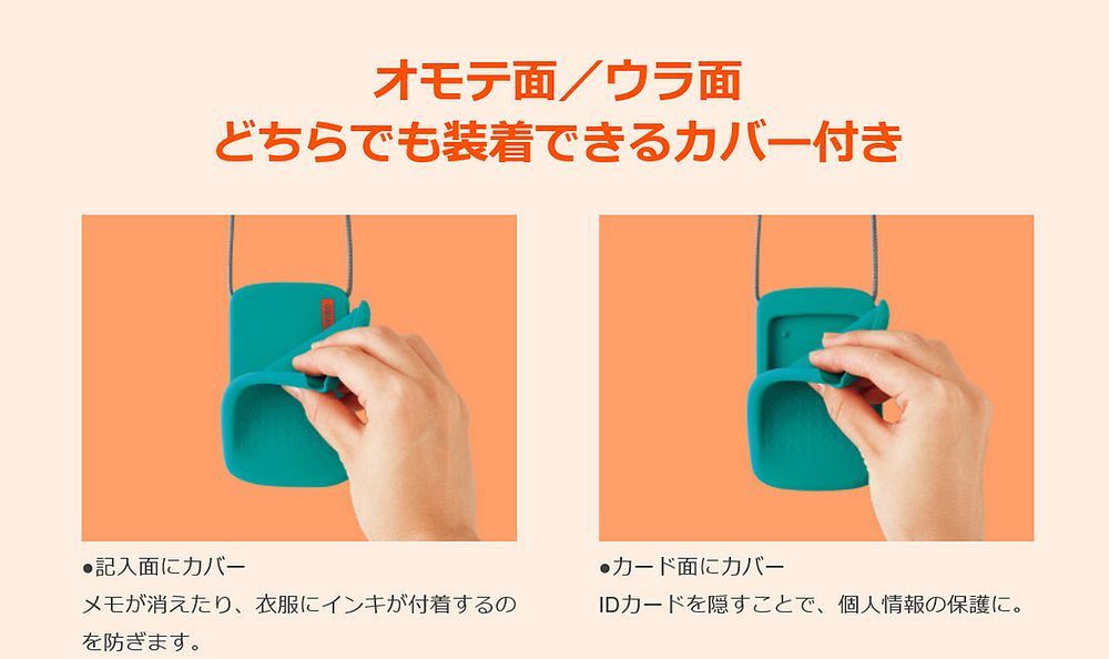 ●IDカードホルダーの背面に、油性ボールペンで書き消しができるwemo機能を採用。