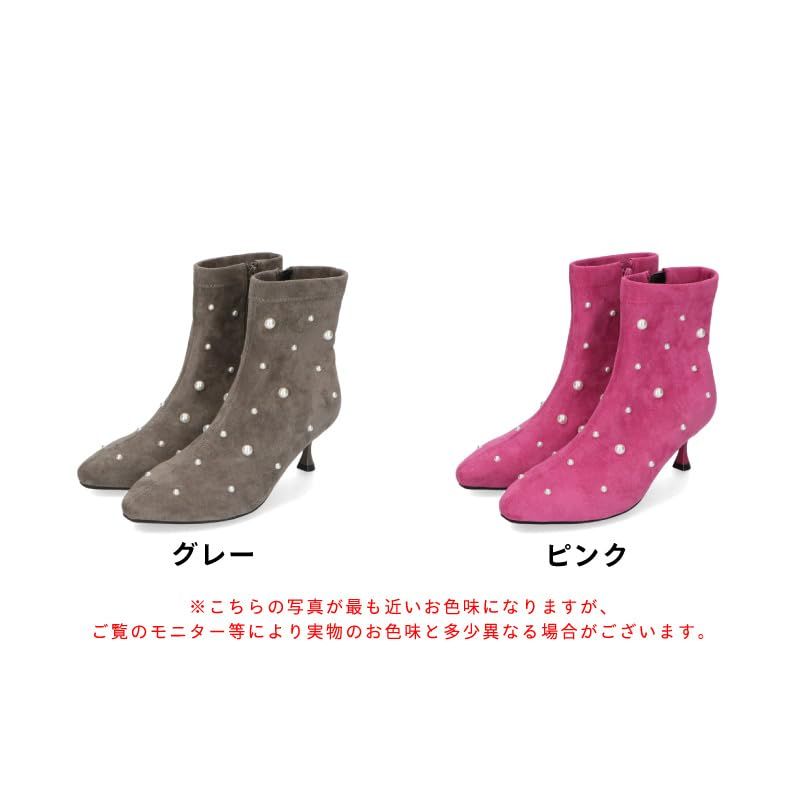 [オリエンタルトラフィック] ショートブーツ フレアヒール ポインテッドトゥ レディース スエード パール サイドジップ 6cmヒール 31429 GREY