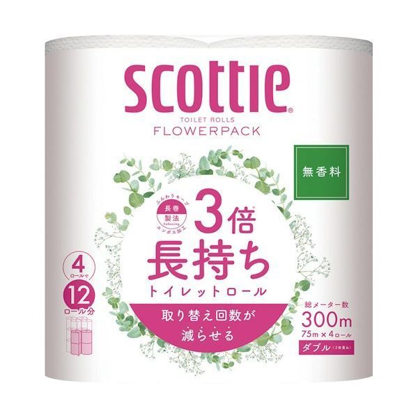 まとめ 紙クレシア スコッティ フラワーパック 3倍長持ち ダブル 芯あり 75 m 4ロール