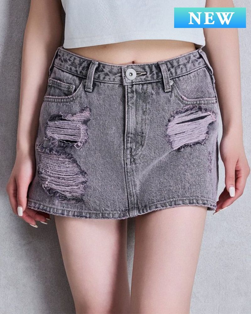GYDA ジェイダ ハイウエストダメージスカートライクデニムショートパンツ