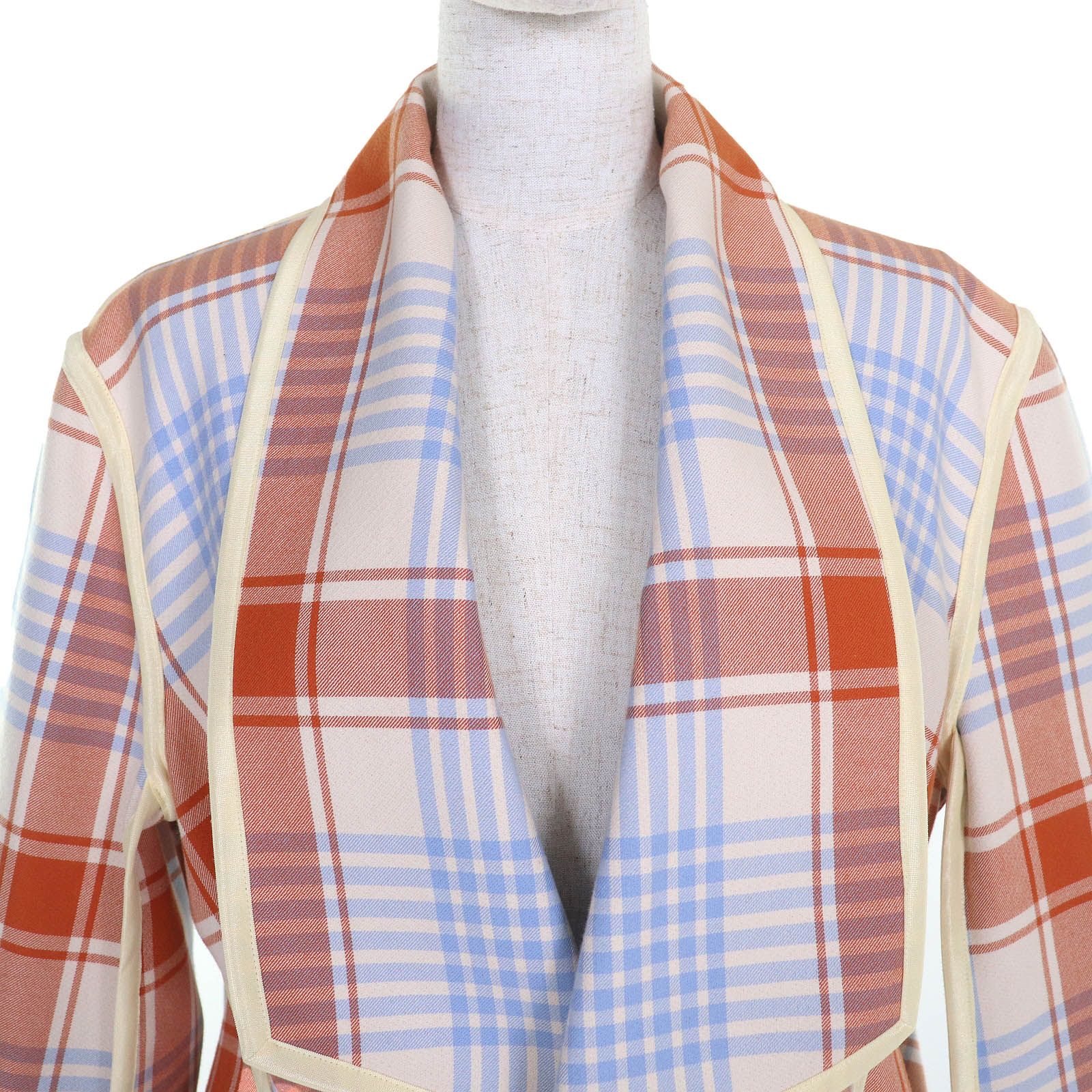 ISSEY MIYAKE イッセイミヤケ 23 AW コットン ウール チェック柄 無地 リバーシブル デザイン コート オレンジブラウン マルチ 2 レディース