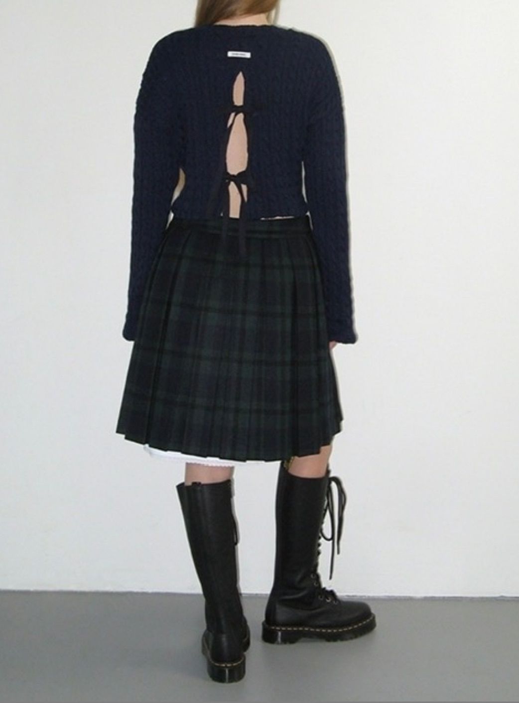 CRANK CHECK LAYERED WOOL PLEATS SKIRT